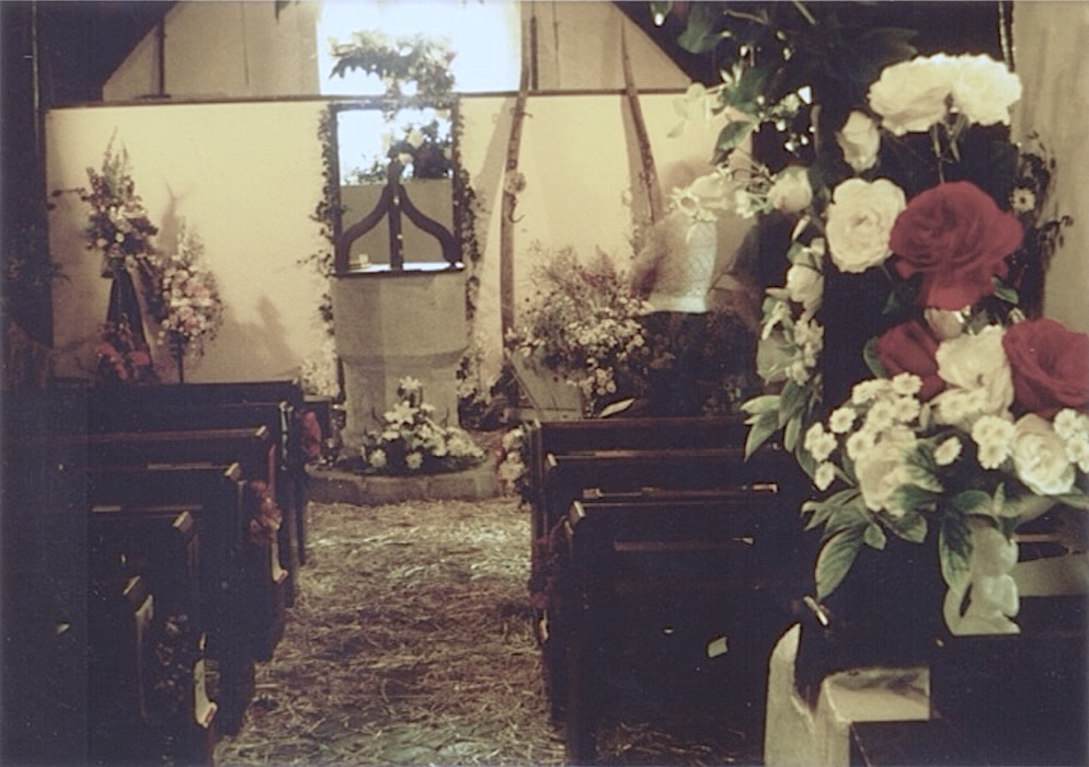 Altar linen was embroidered with IHS by Betty Attenborough of Close End.
